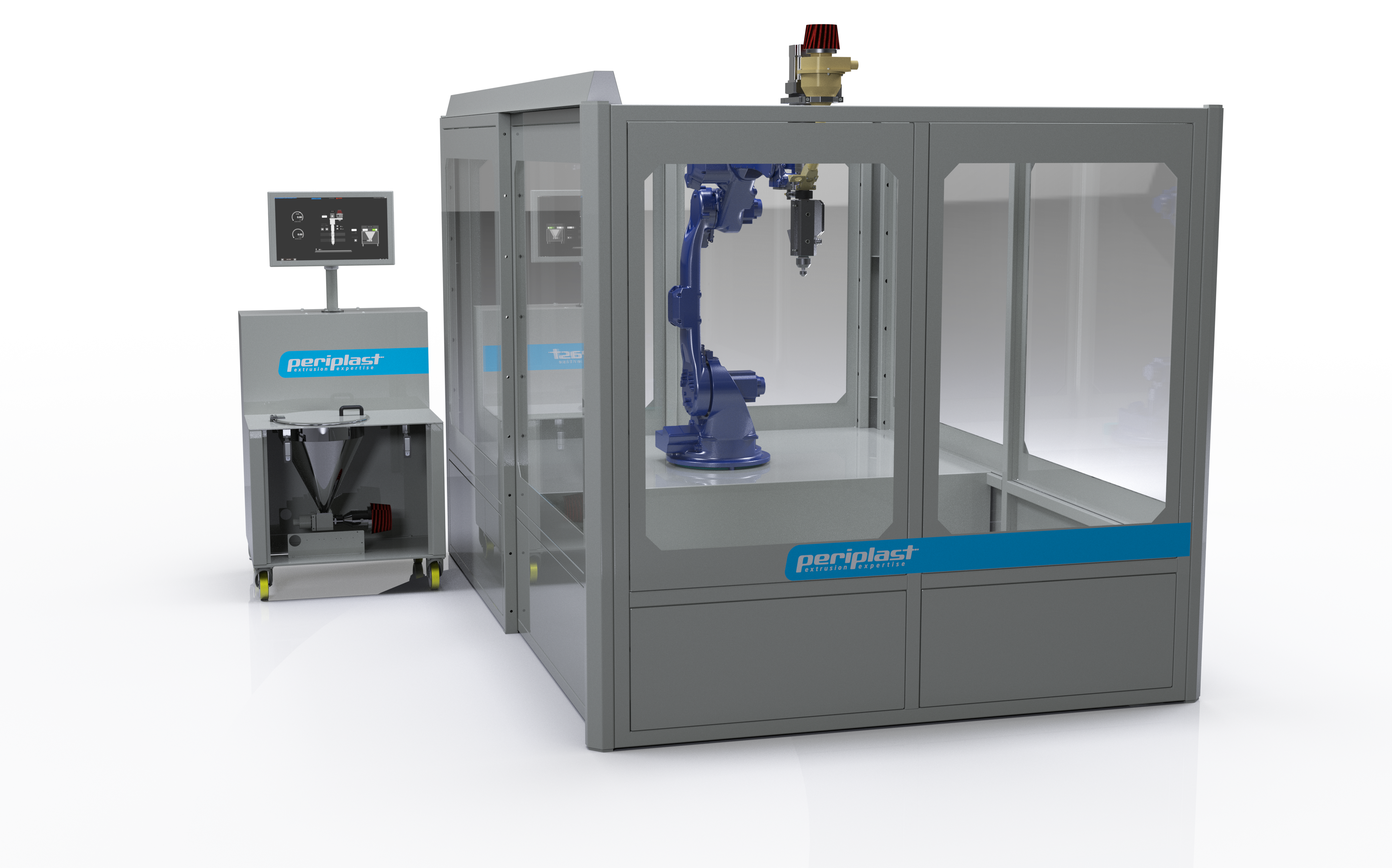 Periplast is an extruder manufacturer for more than 30 years. We are experts in manufacturing small pellets extruders like Ø20 / Ø25 / Ø30 (co-extruders). We re-engineerd these extruders and gave them a ROBOT life, creating our first 3d pellet extruder our new EXTRUBOT®: