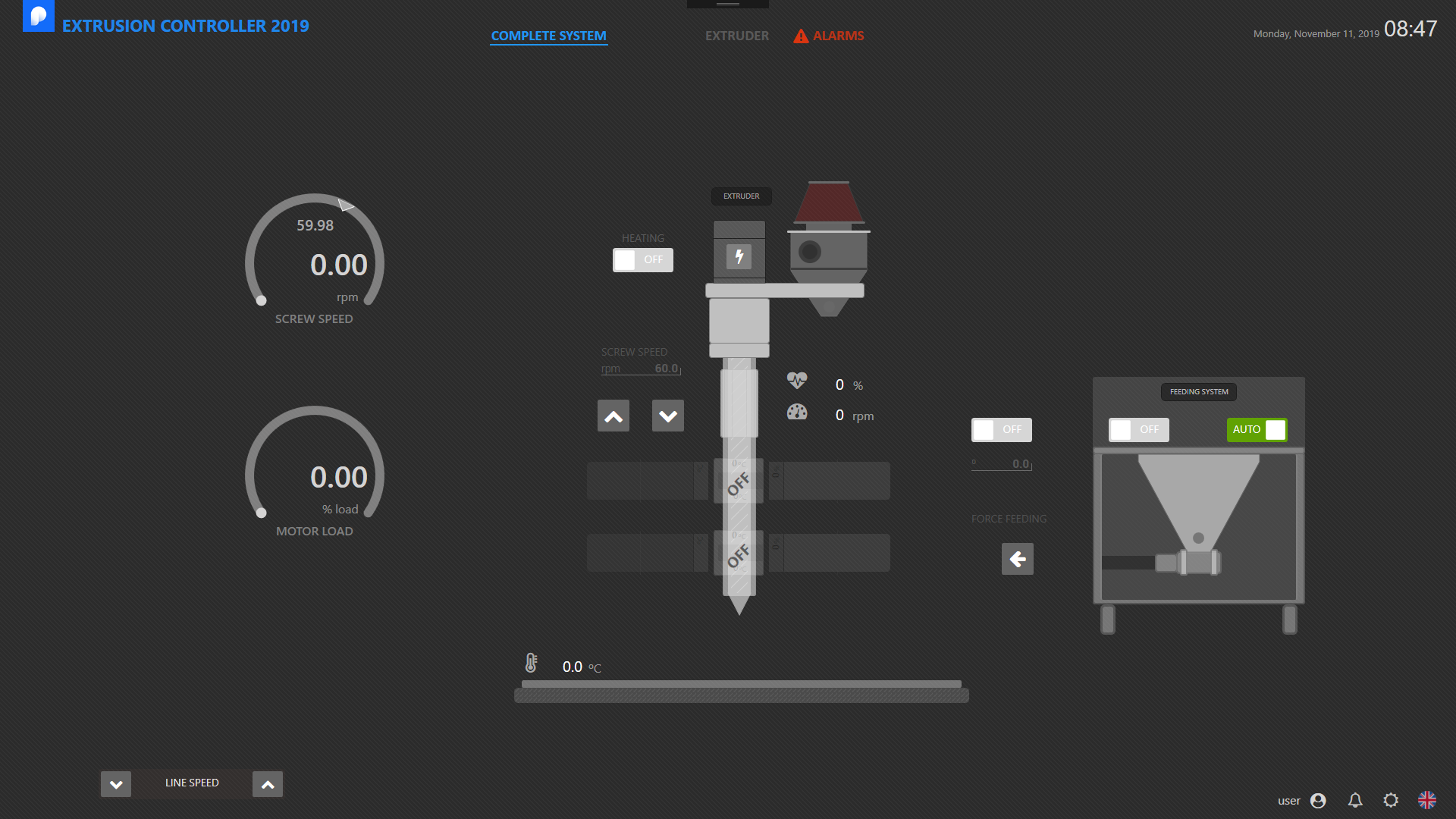 PC-Base multi touch Screen (Extrusion Controller), designed for industrial extruders, which gives you full control of the EXTRUBOT®: